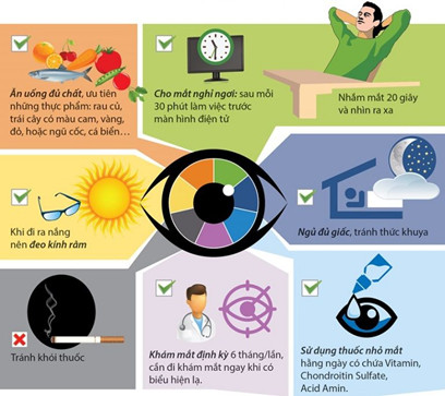 – Cho mắt nghỉ ngơi, không để mắt điều tiết nhiều khiến mệt mỏi.